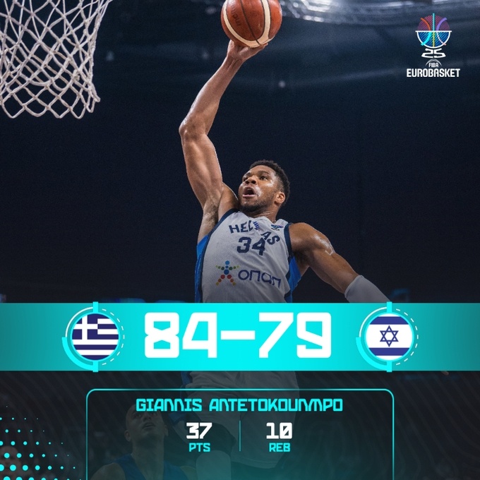 09月08日讯 2025年男篮欧锦赛1/8决赛,希腊以84-79淘汰以色列,拿到最后一个8强名额,将对阵立陶宛。
