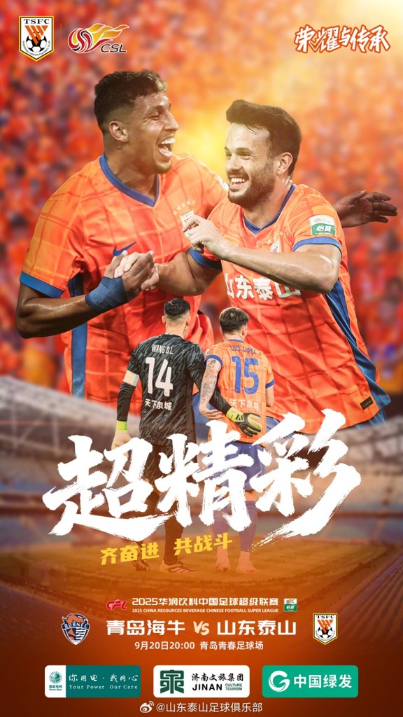 目前中超积分榜上,青岛海牛3胜7平13负积16分,暂列倒数第二;山东泰山12胜5平7负积41分,位列第5。